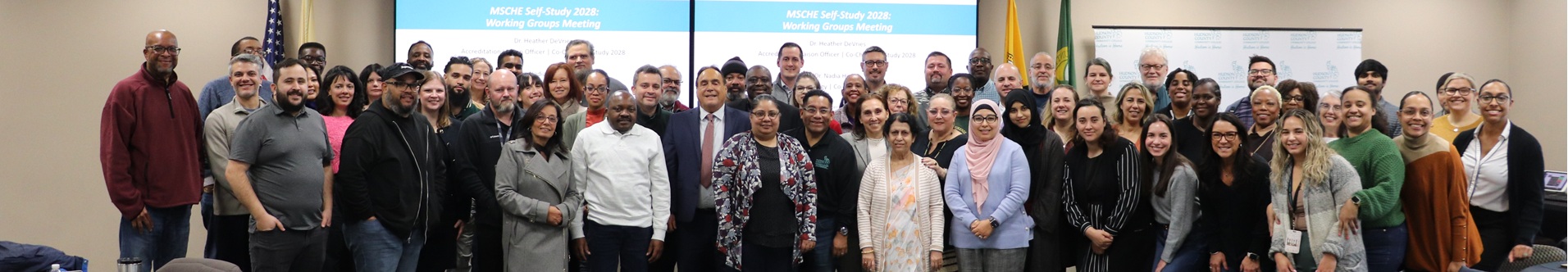 Every eight years, HCCC reaffirms its accreditation with its institutional accreditor, the Middle States Commission on Higher Education (MSCHE). Through the three-year Self-Study Process, HCCC also reaffirms its commitment to its mission of providing its diverse communities with inclusive, high-quality educational programs and services that promote student success and upward social and economic mobility. Self-Study is a period of reflection and evaluation of how well the institution is meeting MSCHE’s Standards, and accreditation from MSCHE indicates that HCCC is delivering high-quality programs and services to its students.